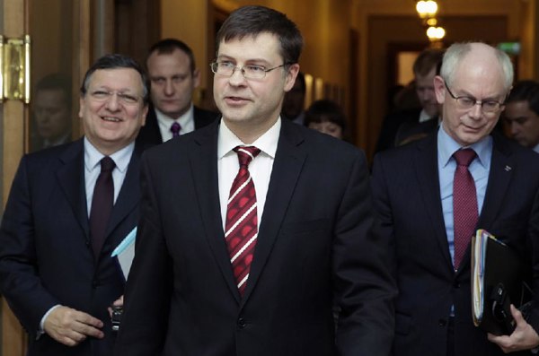 V piatok to uviedli lídri Európskej únie. Predseda Európskej komisie José Manuel Barroso počas svojej prvej návštevy Lotyšska od pripojenia sa k eurozóne povedal, že pobaltský štát je "žiarivým príkladom" toho, ako môže hospodárstvo profitovať z bolestných reforiem. V súčasnosti je najrýchlejšie rastúcou ekonomikou v Európskej únii a Barroso vstup Lotyšska do eurozóny 1. januára označil za najlepšiu demonštráciu pružnosti menovej zóny, a to napriek nedávnym predpovediam, že bude upadať pre vysoké dlhy a recesiu vo viacerých členských štátoch. Stály predseda Európskej rady Herman van Rompuy tiež vyjadril očakávanie, že ďalší pobaltský štát, Litva, sa stane 19. členom eurozóny v roku 2015.