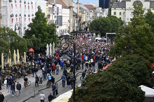 "Aj tu sú ľudia, ktorí majú už plné zuby vlády, ktorí sú nespokojní s nezmyselnými zákazmi a likvidačnými opatreniami. Toto má byť hlavný odkaz tohto protestu. Na tomto proteste podľa informácií, ktoré mám, prišlo k zjednoteniu de facto opozície, okrem strany Smer-SD, ktorá si robí svoj vlastný protest," skonštatoval Uhrík s tým, že volajú po demokratickom referende, aby bol vypočutý hlas a vôľa ľudu, kto má riadiť túto krajinu.