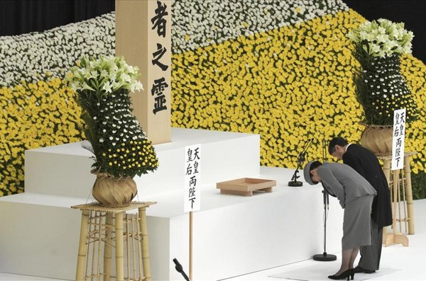 Naruhito, jeho manželka Masako, Abe a približne 5000 pozostalých po vojnových obetiach sa zúčastnili na výročnej slávnosti v tokijskej hale Nippon Budókan, kde si pripomenuli pamiatku 3,1 milióna Japoncov, ktorí padli v druhej svetovej vojne. Išlo o Naruhitovo prvé verejné vystúpenie v úlohe cisára. Šintoistická svätyňa Jasukuni vzdáva hold padlým Japoncom vrátane odsúdených vojnových zločincov. Svätyňu už počas dnešného rána navštívili desiatky konzervatívnych zákonodarcov, čo vyvolalo hnev susedných krajín, najmä Číny a Južnej Kórey, ktoré to vnímajú ako oslavu vojnovej agresie Japonska.
