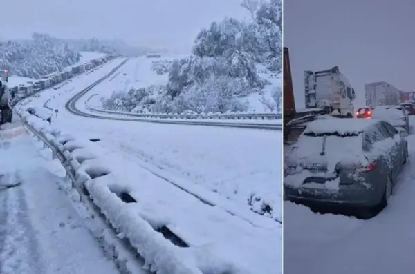 Sneženie neustále pribúdalo a vozidlá na diaľnici nemohli pokračovať v jazde, čo vytvorilo nesmierne dlhé kolóny. Na videách a fotografiách je vidieť, že vrstva snehu na diaľnici dosahovala výšku 40 až 50 cm, pričom mnohé autá mali kolesá úplne zasnežené.