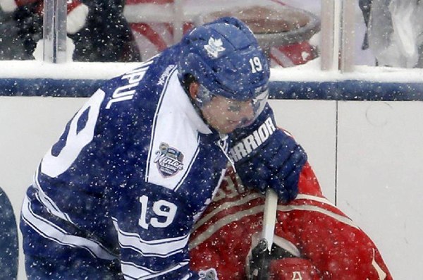 Tridsaťročný Lupul na Michigan Stadium v Ann Arbor v prvej tretine tvrdo fauloval hokejkou súpera a dostal dvojminútový trest. Eaves utrpel pri zákroku zranenie čeľuste, podľa posledných informácií by sa však mal čoskoro vrátiť do zápasového kolotoča. Maple Leafs zvíťazili na štadióne michiganskej univerzity pred rekordnou kulisou 105.491 divákov 3:2 po samostatných nájazdoch.
