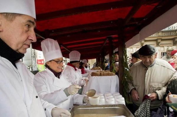 Návštevníci tradičnej akcie si polievku pochvaľovali, jeden z nich si dokonca vystál frontu, aby si dal ešte porciu navyše.