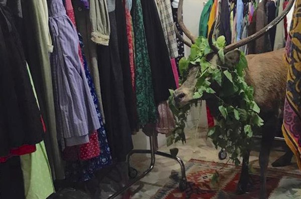 Jeleň sa dostal do predajne v čase, keď predavačka pracovala na výzdobe. Na zverejnených záberoch vidieť, že zviera malo v paroží zapletené husté lístie.