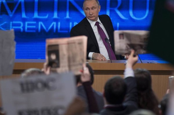 Sankcie Západu sú na 25-30 percent zodpovedné za súčasnú hospodársku krízu v Rusku, uviedol Putin. Obvinil Západ, že sa pokúša o narušenie suverenity Ruska a ukrajinská kríza bola len zámienkou pre tieto kroky Západu. Dôvodom pre kroky Západu podľa neho nebol Krym, ale úsilie "brániť našu nezávislosť a právo na existenciu".