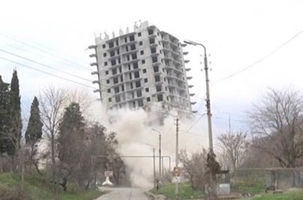 Jej odstrel schválil súd, ktorý ju označil za nezákonnú. Ako ukazuje v piatok zverejnený videozáznam, stavba sa namiesto zrútenia sa k zemi v dôsledku výbuchu iba naklonila a zostala stáť. Podľa portálu denníka Moscow Times sa ju zbúrať nepodarilo ani na druhý pokus. Staviteľ budovy ruským médiám povedal, že stavbu od minulého roka začali stavať tak, aby odolala aj zemetraseniu s magnitúdou 10.