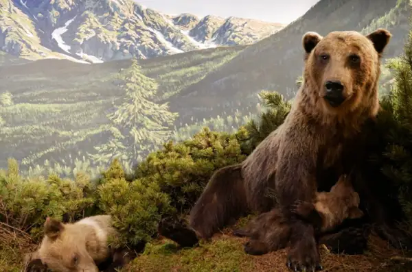 Pôvodnú diorámu, ktorej vládla medvedia rodinka, nechali kompletne rozobrať a prerobiť. Verní najväčšej tatranskej šelme, ktorá je neodmysliteľnou súčasťou subalpínskeho stupňa, však ostali aj naďalej. „Keďže nám v poslednej dobe pribúdali úhyny medveďov, otvorili sa nám nové možnosti, ako vyskladať poslednú z našich diorám. Návštevníci si môžu obzrieť medvediu mamu s mláďatkom, ktorú z kosodreviny pozoruje statný samec. Celý výjav sledujú aj dvaja pestúni a ďalšie tohtoročné mláďa, čiže dokopy máme v dioráme šesť medveďov,“ konkretizuje zoologička Gabriela Chovancová, ktorá je zároveň aj kurátorkou zoologických zbierok Výskumnej stanice a Múzea TANAP-u v Tatranskej Lomnici.