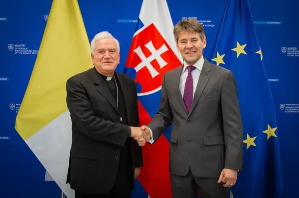 BRATISLAVA - Štátny tajomník Ministerstva zahraničných vecí a európskych záležitostí Slovenskej republiky Marek Eštok dnes prijal apoštolského nuncia Mons. Nicolu Girasoliho. Zástupcovia SR i Vatikánu zdôraznili nevyhnutnosť pokračovania spolupráce v presadzovaní posolstiev mieru a humanitárnej pomoci obyvateľom krajín, v ktorých aktuálne prebiehajú vojnové konflikty.